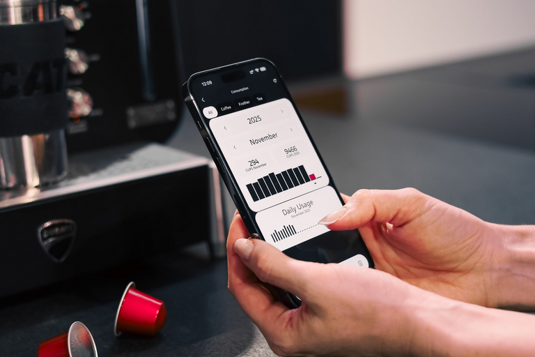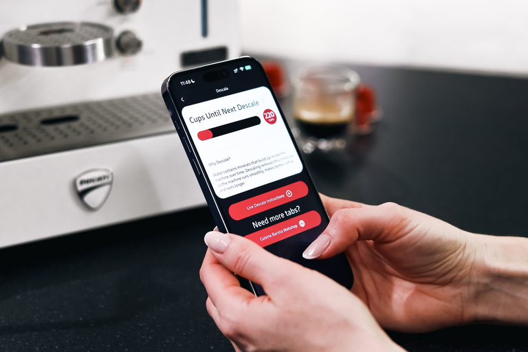 L'app Barista by Ducati ti aiuta nelle operazioni di assistenza, come la decalcificazione, ti fornisce assistenza e statistiche sul tuo consumo di caffè.